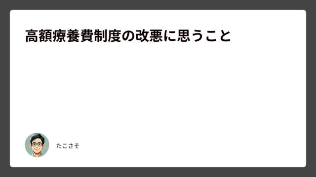 保険を断つ 高額療養費制度の改悪に思うこと 2026年4月9日 たこさそ 一医療者の視点から ― 2026年4月 保険とは何か、という原点 保険というものの本質を改めて考えてみたい。保険とは、多くの人からお金を少しずつ集め、低い確率で生活や …