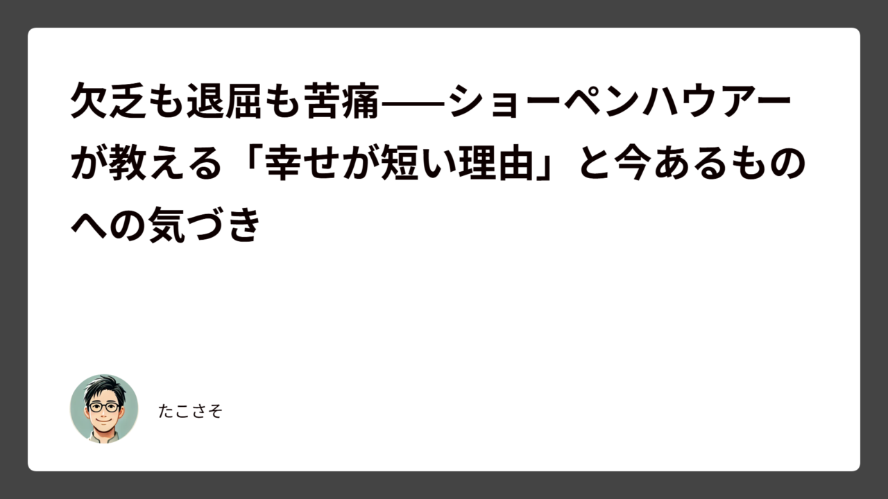 欠乏も退屈も苦痛——ショーペンハウアーが教える「幸せが短い理由」と今あるものへの気づき