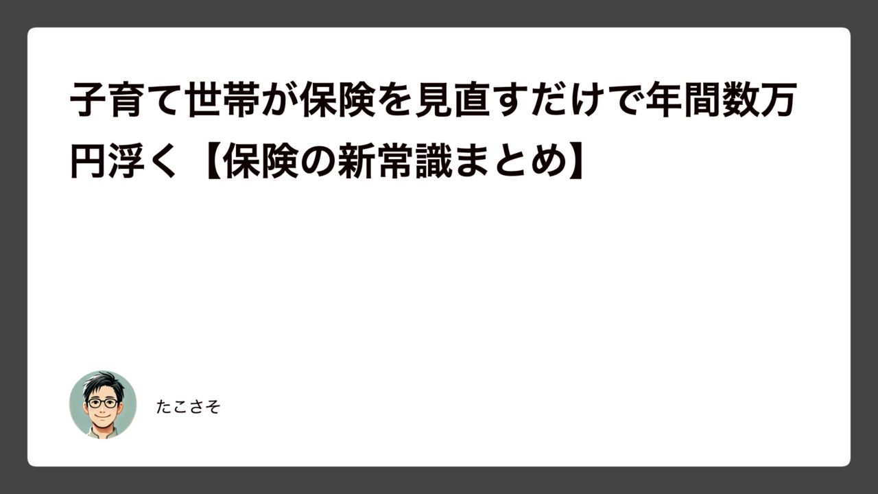 子育て世帯が保険を見直すだけで年間数万円浮く【保険の新常識まとめ】