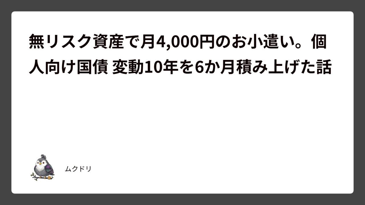 無リスク資産で月4,000円のお小遣い。個人向け国債 変動10年を6か月積み上げた話