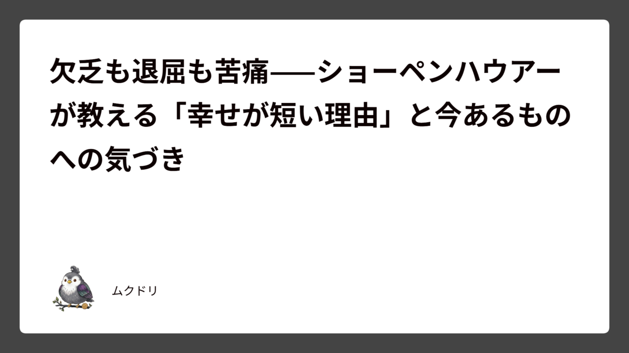 欠乏も退屈も苦痛——ショーペンハウアーが教える「幸せが短い理由」と今あるものへの気づき